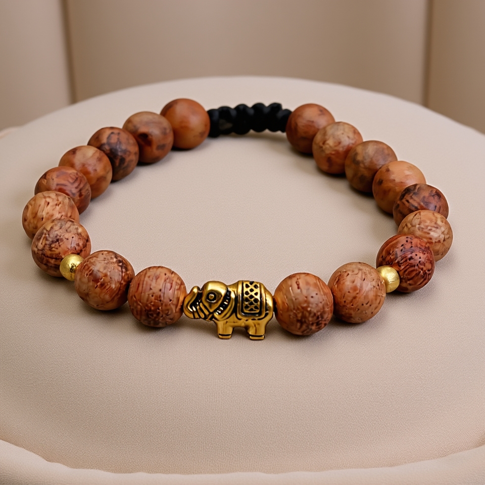 The Bayong Wood Wrist Mala with Elephant Beads is a beautiful spiritual tool that embodies the wisdom and strength of elephants, revered in many cultures for their gentle nature and intelligence. Handmade in Nepal by skilled artisans, this mala is crafted from Bayong wood, known for its grounding properties. Each bead serves as a reminder of the virtues of patience and perseverance.