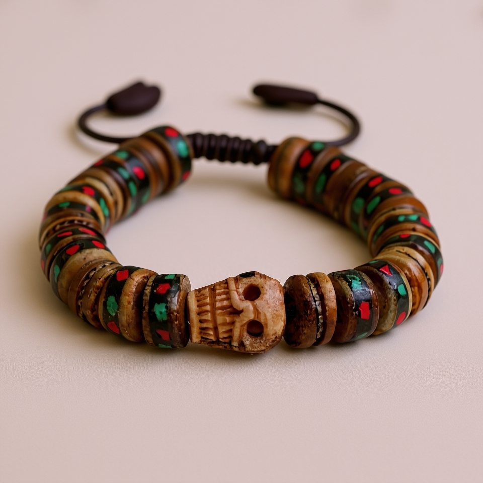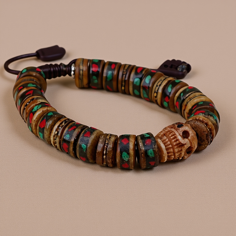 Brown Skull Inlaid Yak Bone Wrist Mala