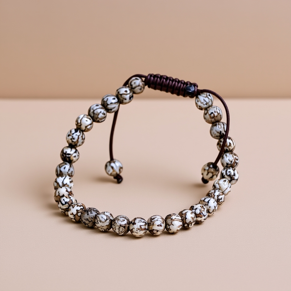 6 MM Conch-Shell Mantra Carved Beads Stone Adjustable Wrist Mala/ Bracelet