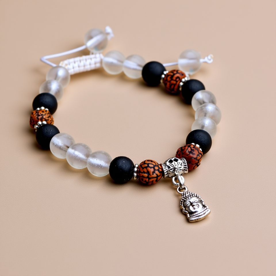 Crystal Stone Wrist Mala With Buddha Charm