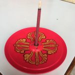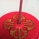 This handcrafted wooden incense burner, adorned with a traditional dorje design, serves as a sacred vessel for your spiritual practice. Created by skilled artisans in Nepal, it not only holds incense securely but also collects the ash, preserving the purity of your space. The central metal ring ensures that the incense is held firmly, allowing for a steady flow of fragrant smoke that can enhance meditation and mindfulness.