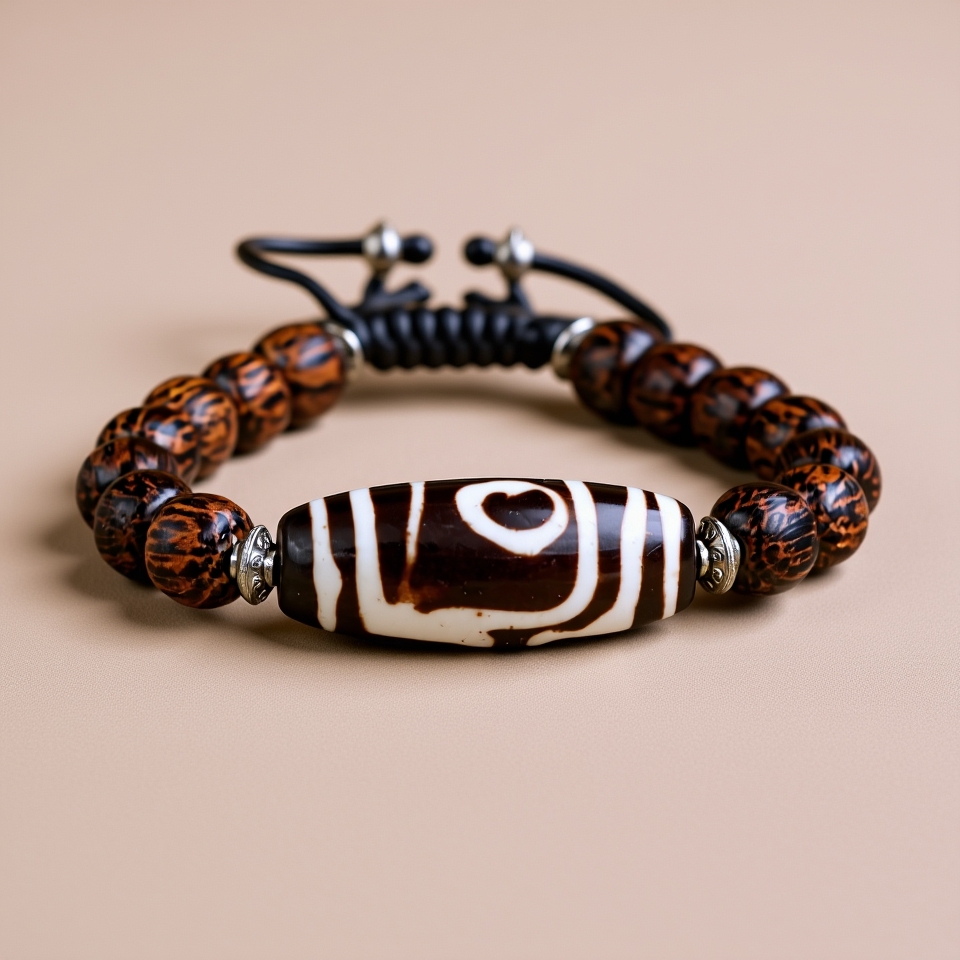 | Material: | Palm Wood with Dzi Beads |