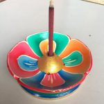 This handcrafted wooden incense burner, adorned with a delicate lotus design, is created by skilled artisans in Nepal. Designed to honor the sacred practice of incense burning, it effectively holds the incense, allowing for a serene and mindful experience as the fragrant smoke rises, purifying the space around you. A metal ring at the center secures the incense, ensuring a steady burn. This piece not only serves a practical purpose but also enhances your spiritual practice by inviting tranquility into your environment.