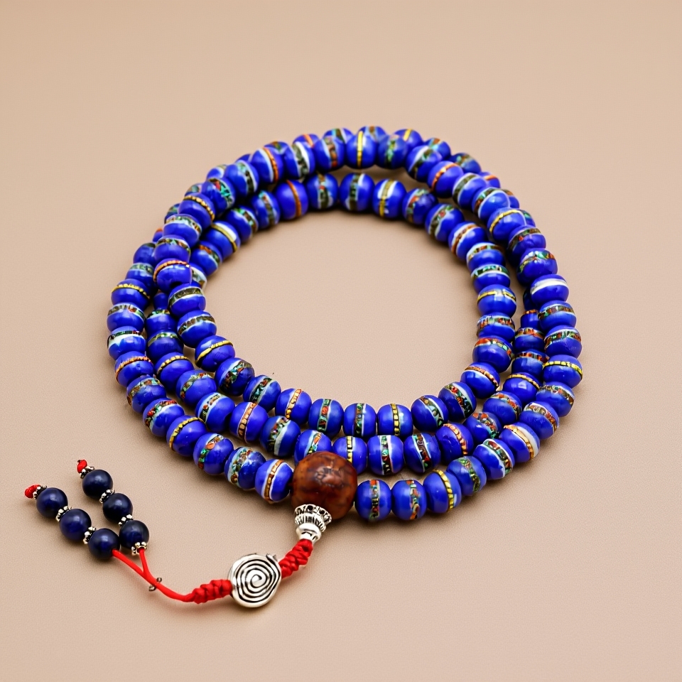 This Tibetan Inlaid Yak Bone Prayer Mala, adorned with a metal bead, serves as a powerful tool for meditation and reflection. Handmade in Nepal by skilled artisans, it embodies the essence of impermanence, prompting us to embrace compassion and joy in our lives. The yak bone serves as a reminder of our transient existence, encouraging a life rich in service and love.