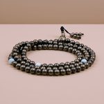 Pyrite Stone with Turquoise Stone Spacer and White Metal Lotus Guru Bead Mala