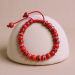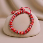 Red Inlaid Yak Bone Wrist Mala/Bracelet with Adjustable Knot