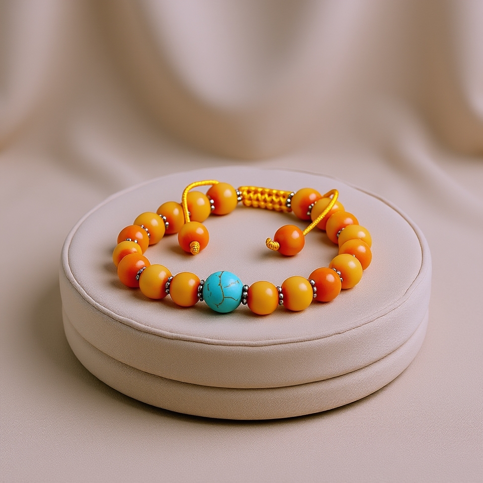 Resin Ambar Wrist Mala With Turquoise Stone Spacer