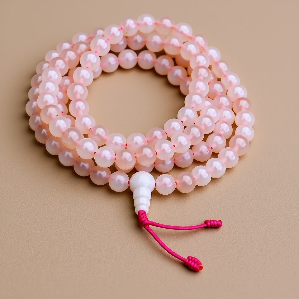 The Rose Quartz Stone Prayer Mala fosters self-love, boosts confidence, and deepens insight during meditation. Embrace the nurturing energy of this mala and allow it to guide you on your spiritual journey.