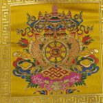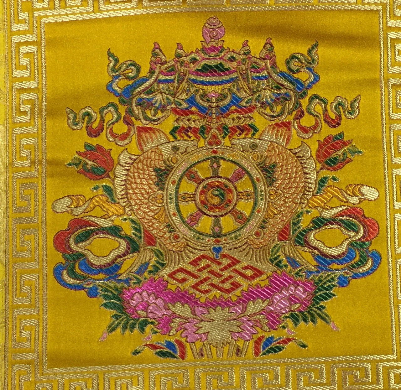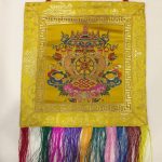 This handmade Tibetan Buddhist wall hanging features the eight auspicious symbols, each representing profound teachings of compassion, wisdom, and good fortune. Crafted by skilled artisans in Nepal, this piece is adorned with a delicate lotus design, enhancing its spiritual significance. Ideal for your office, dharma center, shrine room, or puja space, it serves as a reminder of the path to enlightenment and the interconnectedness of all beings.