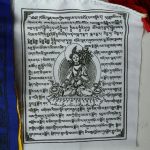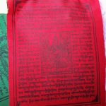 Each flag represents peace, compassion, strength, and wisdom, featuring five deities, including Green Tara and Guru Rinpoche.