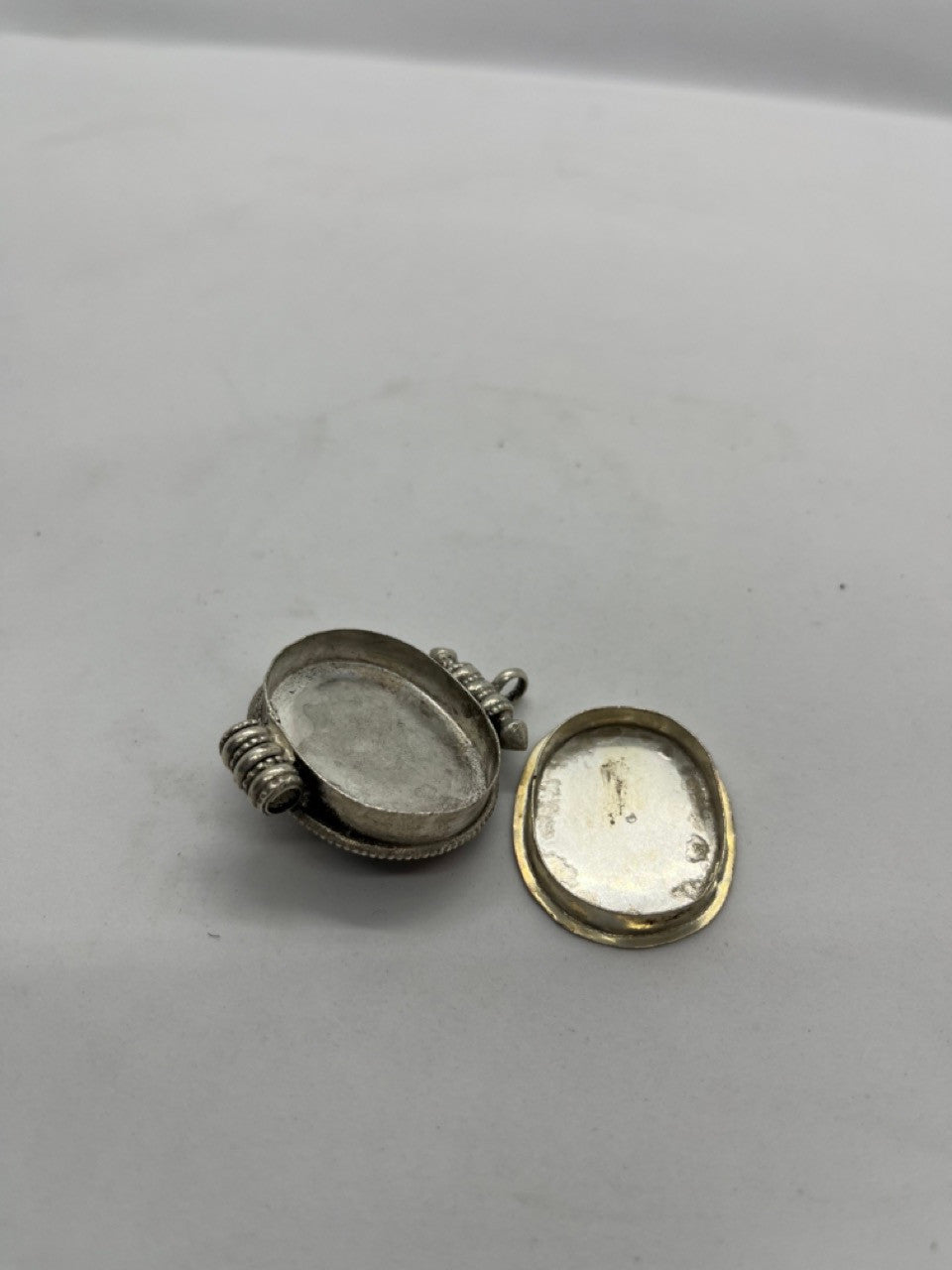 The gau, a sacred prayer box pendant, serves as a portable shrine for Buddhists, where prayers and revered relics are cherished and carried, connecting the wearer to their spiritual path. This pendant is lovingly handmade in Nepal by skilled artisans, crafted from white metal, turquoise, and coral, embodying the rich cultural heritage of Tibetan Buddhism.