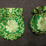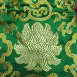 This handmade green silk brocade mala bag features a graceful lotus design, embodying the essence of spiritual practice. Crafted by skilled artisans in Nepal, this large-sized pouch serves as a protective home for your mala when not in use. Its versatile nature allows it to be utilized as a prayer mala bag, coin purse, or even a unique jewelry pouch. Embrace the sacredness of your belongings while traveling or during daily rituals with this elegant accessory.