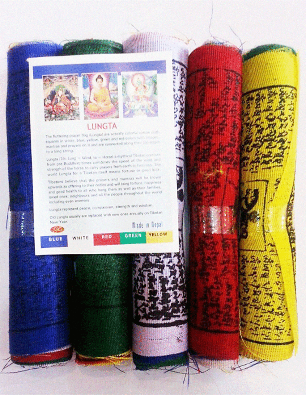 The Lungta symbolizes fortune and the mythical creature that unites the speed of the wind with the strength of a horse, delivering prayers from earth to the heavens. Tibetans believe that these flags spread peace, compassion, and good health to all beings.