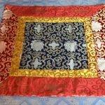 This handmade Tibetan altar cloth, crafted in Nepal by skilled artisans, features a serene blue lotus design, symbolizing purity and spiritual awakening. Made from high-quality silk, it serves as a beautiful offering for your shrine or meditation space. The cotton lining adds durability, enhancing its sacred purpose. Ideal for creating a harmonious atmosphere during your practices, this altar cloth invites blessings and mindfulness.