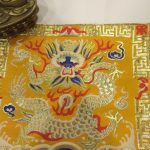 This handmade Tibetan silk brocade placemat features a majestic dragon, symbolizing strength and protection. Designed for use during prayer ceremonies, it serves as a sacred space for placing the bell and dorje, enhancing your meditation practice. Crafted by skilled artisans in Nepal, this altar cloth reflects the rich traditions of Vajrayana Buddhism. Ideal for your shrine room, it transforms your spiritual environment.