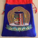 This handmade Tibetan silk brocade kalachakra mala bag serves as a sacred vessel for your mala, protecting it when not in use. Crafted by skilled artisans in Nepal, this single drawstring bag is ideal for safeguarding your prayer beads, while also serving as a unique clutch or coin purse. Its spiritual significance enhances your practice, making it a cherished accessory for travel or daily use.