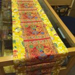 This handmade Tibetan table runner, crafted from silk brocade, features a central double dorje, symbolizing the union of wisdom and compassion. Adorned with traditional auspicious designs, it serves as a beautiful addition to your meditation space or any part of your home, inviting serenity and mindfulness. Made with care by skilled artisans in Nepal, this piece embodies the rich spiritual heritage of Tibetan culture.