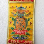 Crafted in Nepal by skilled artisans, this piece reflects traditional Tibetan artistry. The Eight Auspicious Symbols—Golden Fish, Conch, Banner, Knot, Vase, Wheel, Lotus, and Parasol—embody blessings and prosperity.