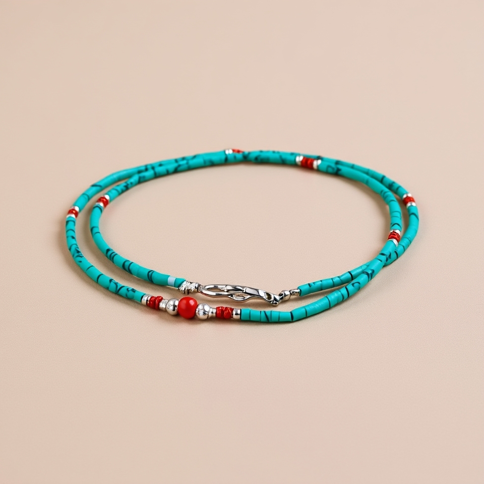 Turquoise is revered for its protective qualities, serving as a shield against negativity while promoting inner calm and emotional balance. It encourages honest communication and is seen as a healing stone, harmonizing the mind, body, and spirit. This necklace serves as a reminder of wisdom, strength, and serenity on your journey toward personal growth.
