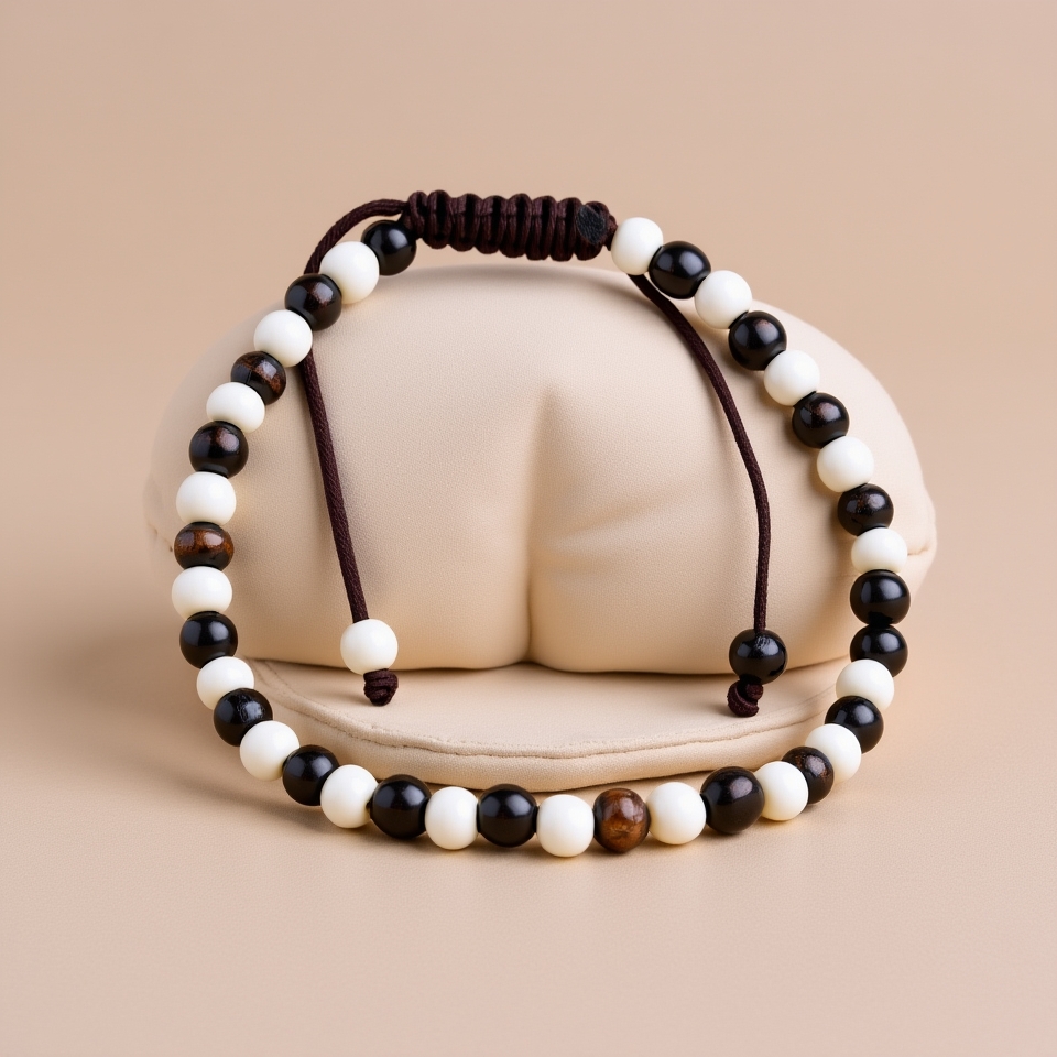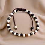 4 MM Black & White Yak Bone Wrist Mala with Adjustable Knot