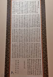 Fukan zazengi, also known by its English translation Universal Recommendation for Zazen, is an essay describing and promoting the practice of zazen written by the 13th century Japanese Zen monk Eihei Dōgen. The date of its composition is unclear, and the text evolved significantly over the author's lifetime. It is written in Classical Chinese rather than the Classical Japanese Dōgen used to compose his famous Shōbōgenzō.