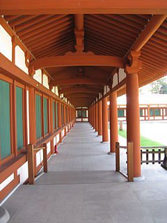The kairō , bu (廡), sōrō or horō (歩廊) is the Japanese version of a cloister, a covered corridor originally built around the most sacred area of a Buddhist temple, a zone which contained the Kondō and the pagoda. Nowadays it can be found also at Shinto shrines and at shinden-zukuri aristocratic residences.