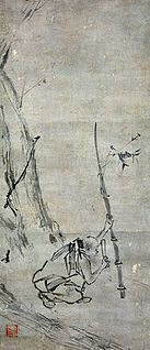 Liang Kai was a Chinese painter of the Southern Song Dynasty. He was also known as Madman Liang because of his very informal pictures. He was born in Shandong and worked in Lin An. He is known to have studied with the master Jia Shigu. He was awarded the rank of Painter-in-Attendance at the court of Jia Tai where he was known for mastery in painting figures, landscapes, and other minor subjects. He was also awarded the Golden Belt, however he left it behind when he left his position at court to practise Chan Buddhism.