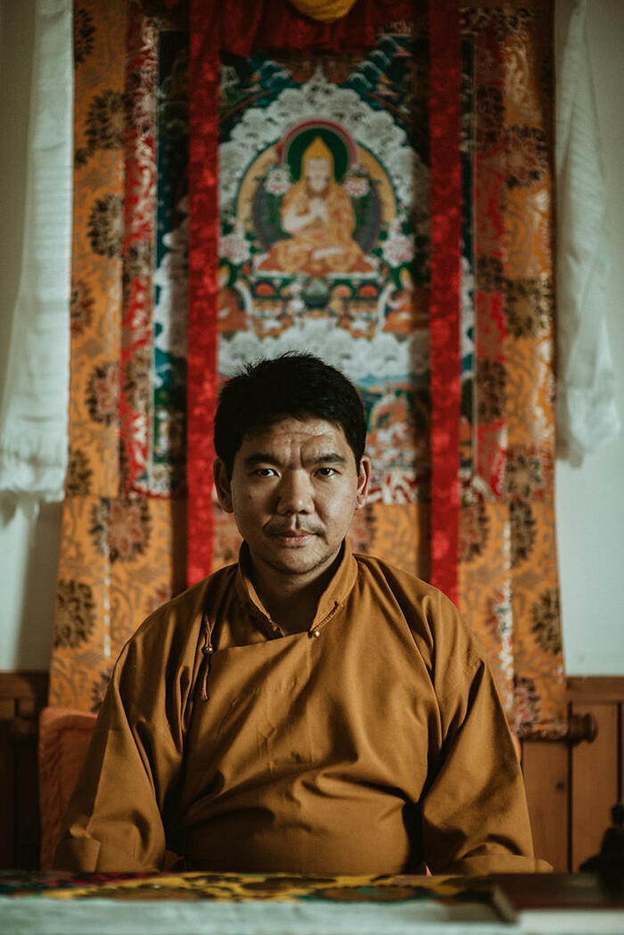 Tsenshap Serkong Rinpotché II, born in 1984 in Spiti, India, was recognized at age three and a half as the reincarnation of a renowned Buddhist master and debate partner of the 14th Dalai Lama.