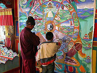 Shedra is a Tibetan word meaning "place of teaching" but specifically refers to the educational program in Tibetan Buddhist monasteries and nunneries. It is usually attended by monks and nuns between their early teen years and early twenties. Not all young monastics enter a shedra; some study ritual practices instead. Shedra is variously described as a university, monastic college, or philosophy school. The age range of students typically corresponds to both secondary school and college. After completing a shedra, some monks continue with further scholastic training toward a Khenpo or Geshe degree, and other monks pursue training in ritual practices.